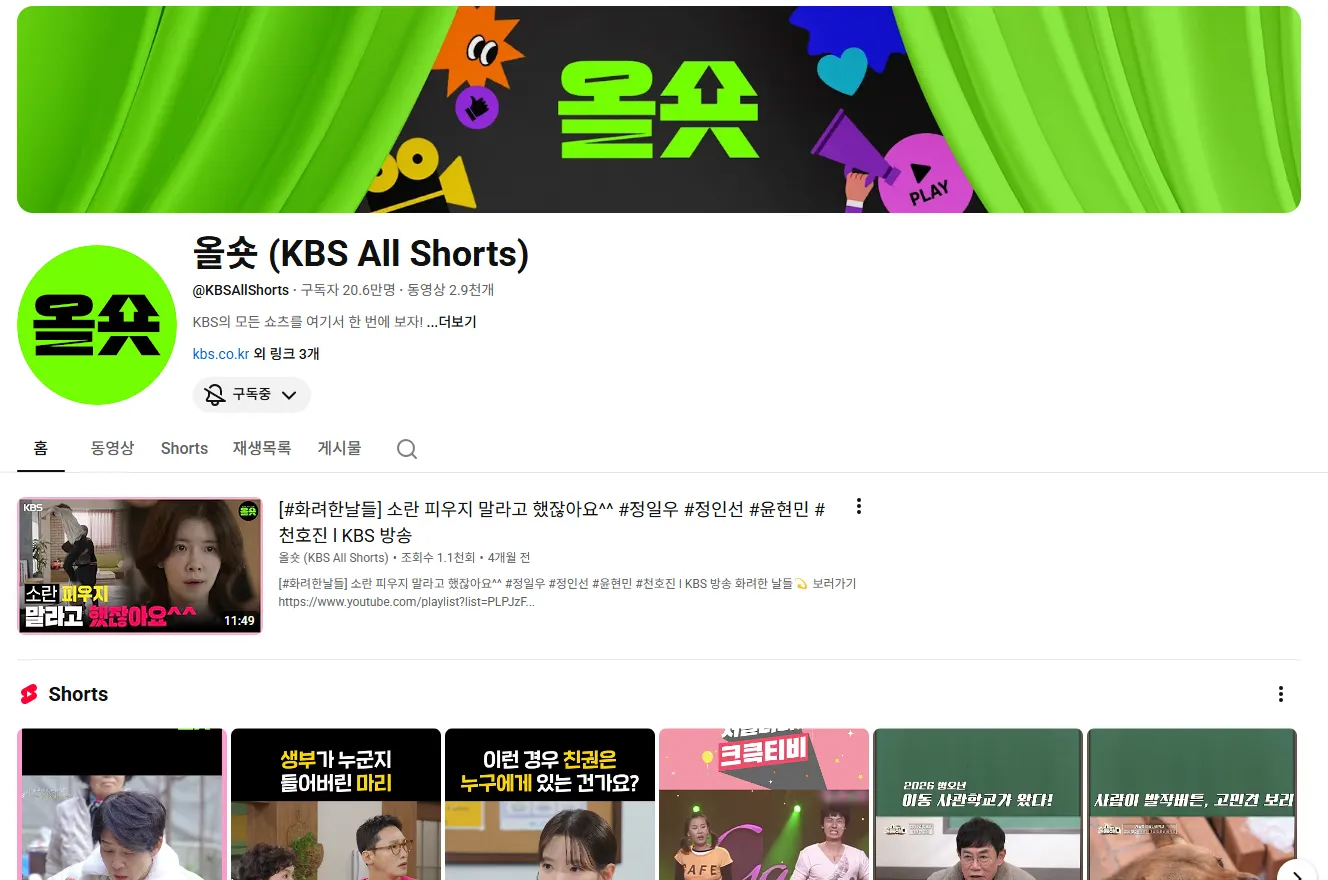 - 링크 : https://www.youtube.com/@KBSAllShorts