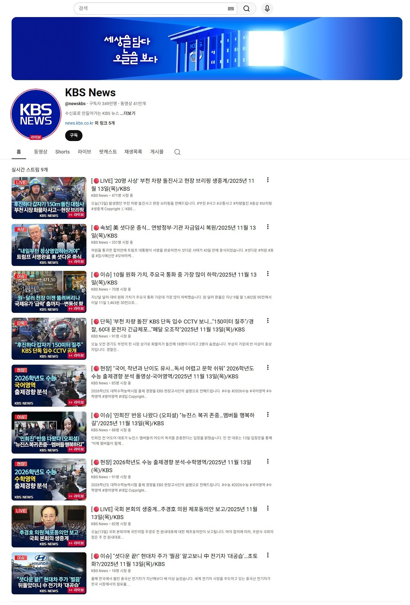 KBS뉴스 유튜브 채널을 통해 주요 뉴스의 실시간 영상과 클립을 제공하고 있습니다. 이용자 소비 패턴을 고려해 운영함으로써 뉴스 접근성 제고를 도모하고, 공영 뉴스가 다양한 이용자에게 안정적으로 전달되도록 운영 체계를 유지하고 있습니다.