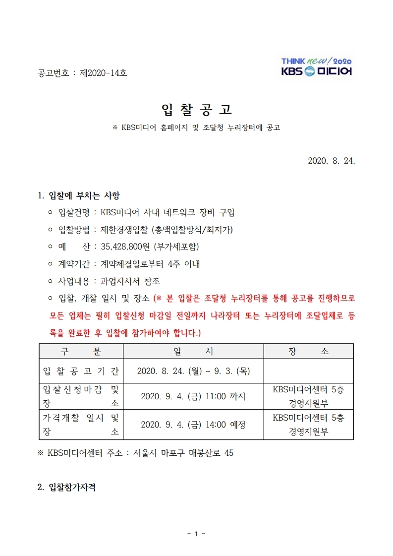 [입찰공고] KBS미디어 사내 네트워크 장비 구입
