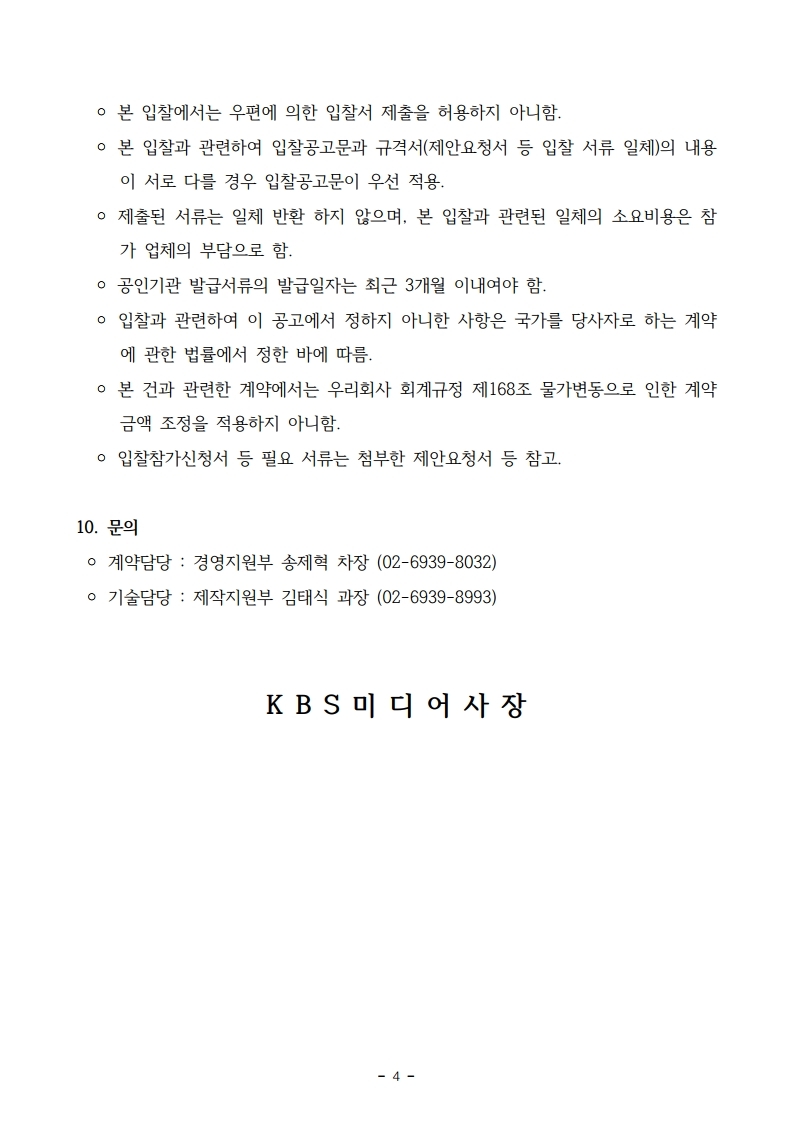 [긴급입찰공고] KBS미디어 방송프로그램 온라인 채널 및 콘텐츠 홍보 운영 사업자 선정