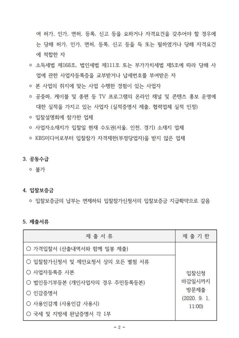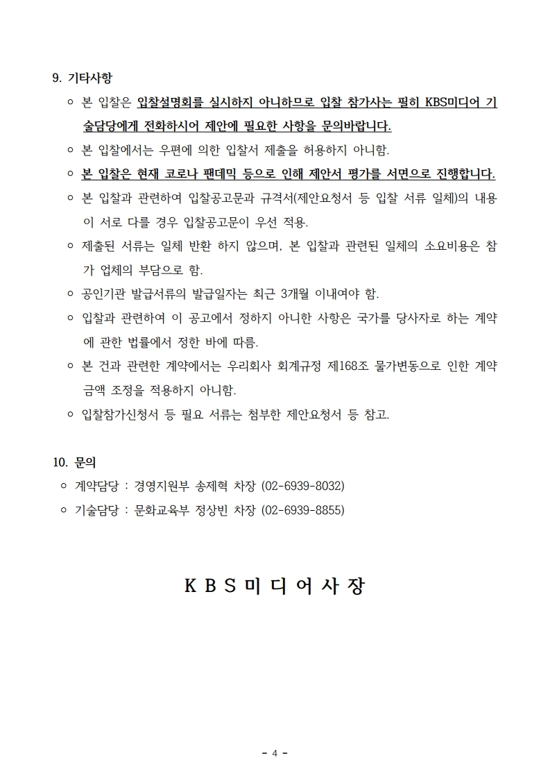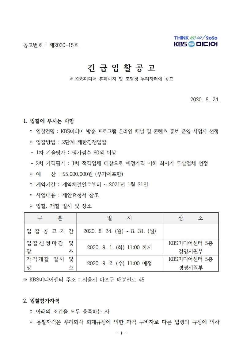 [긴급입찰공고] KBS미디어 방송프로그램 온라인 채널 및 콘텐츠 홍보 운영 사업자 선정