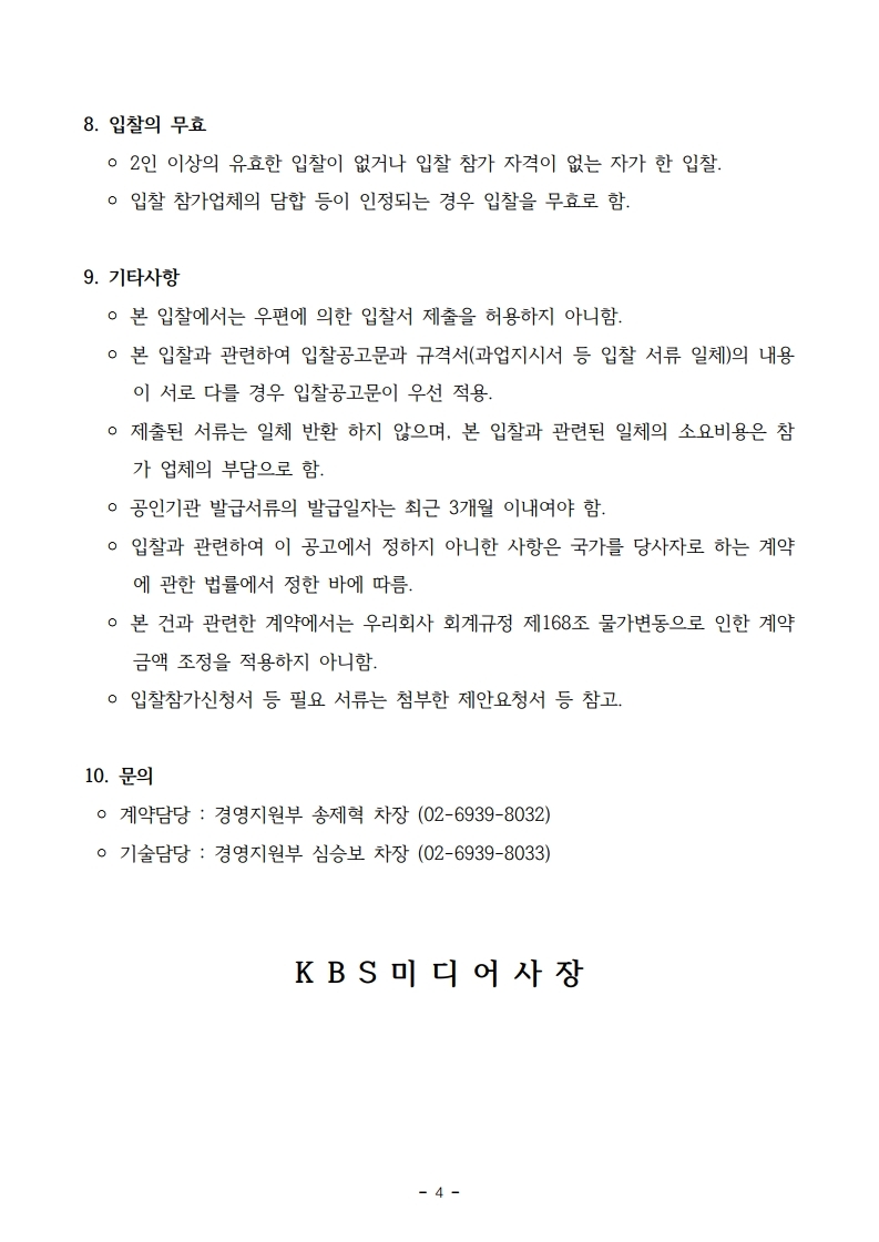 [긴급입찰공고] KBS미디어 방송프로그램 온라인 채널 및 콘텐츠 홍보 운영 사업자 선정