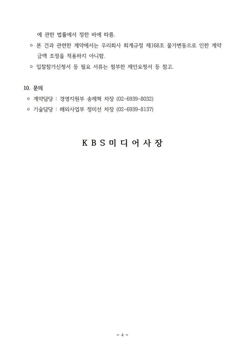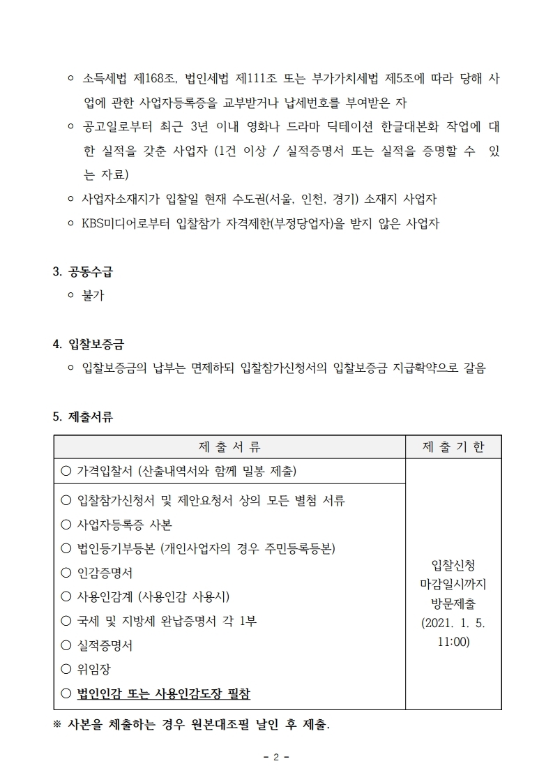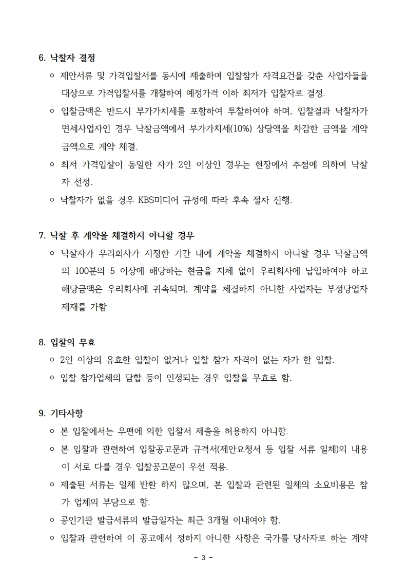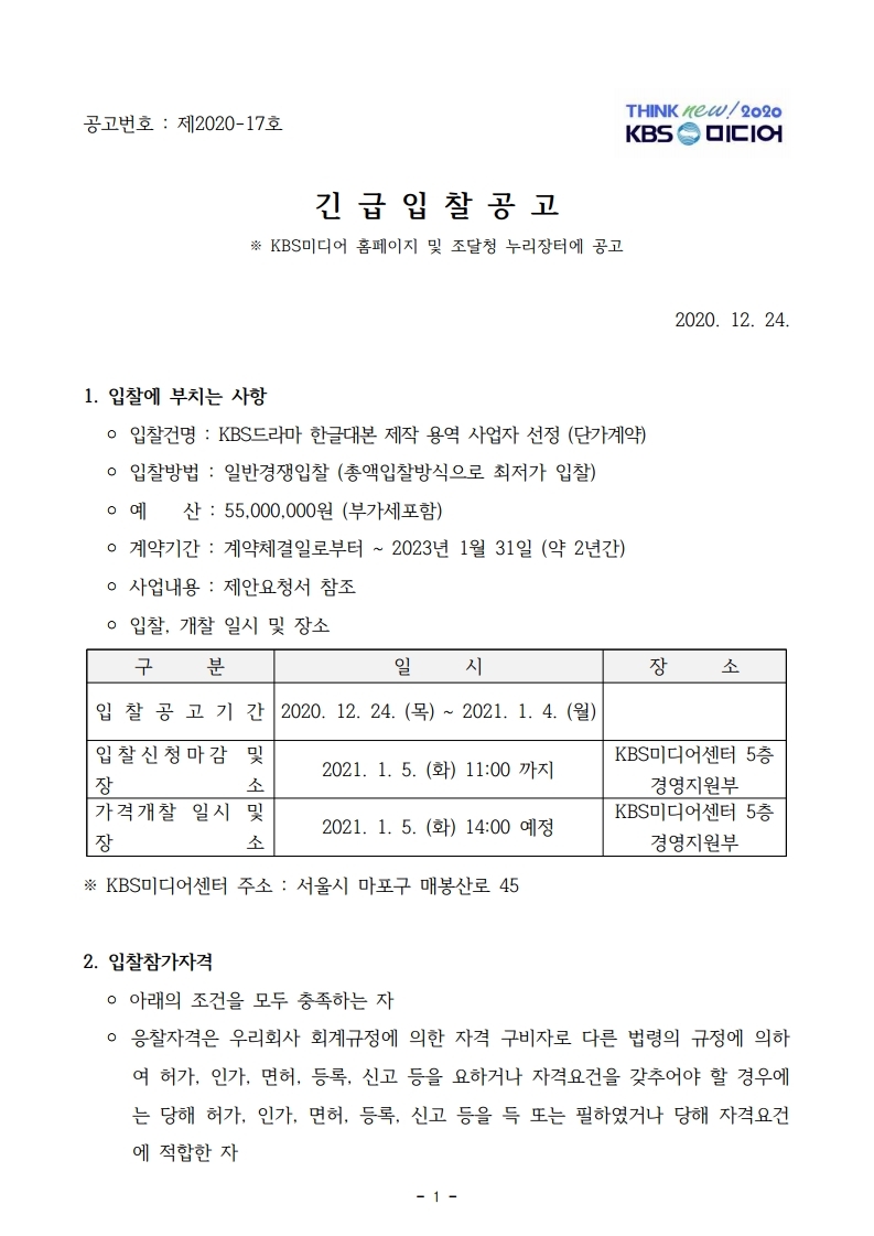 [긴급입찰공고] KBS드라마 한글 대본 제작 용역 사업자 선정