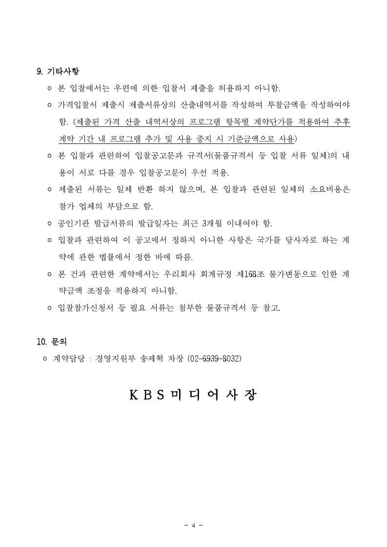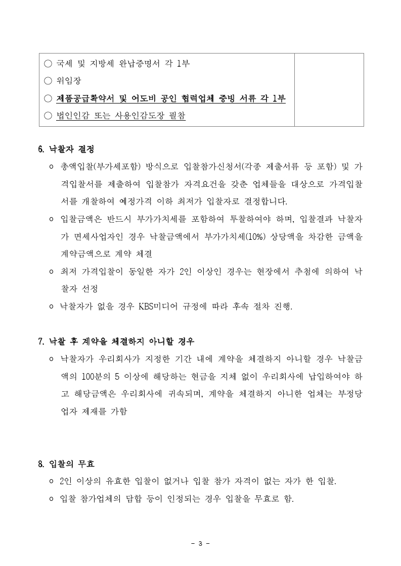 [긴급입찰공고] KBS드라마 한글 대본 제작 용역 사업자 선정