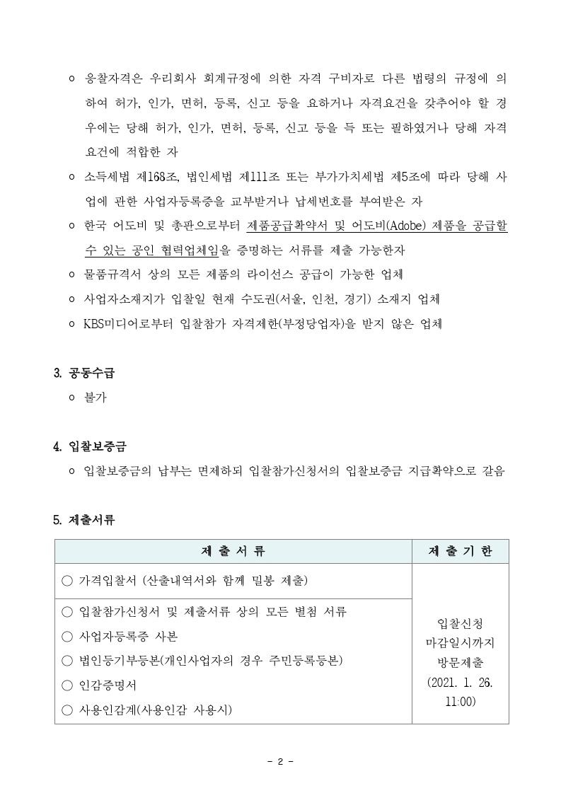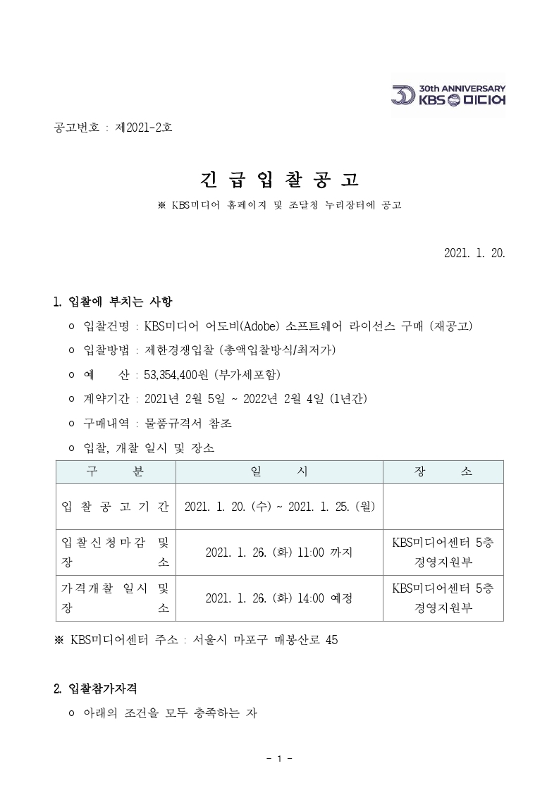 [긴급입찰공고] KBS미디어 어도비(Adobe) 소프트웨어 라이선스 구매