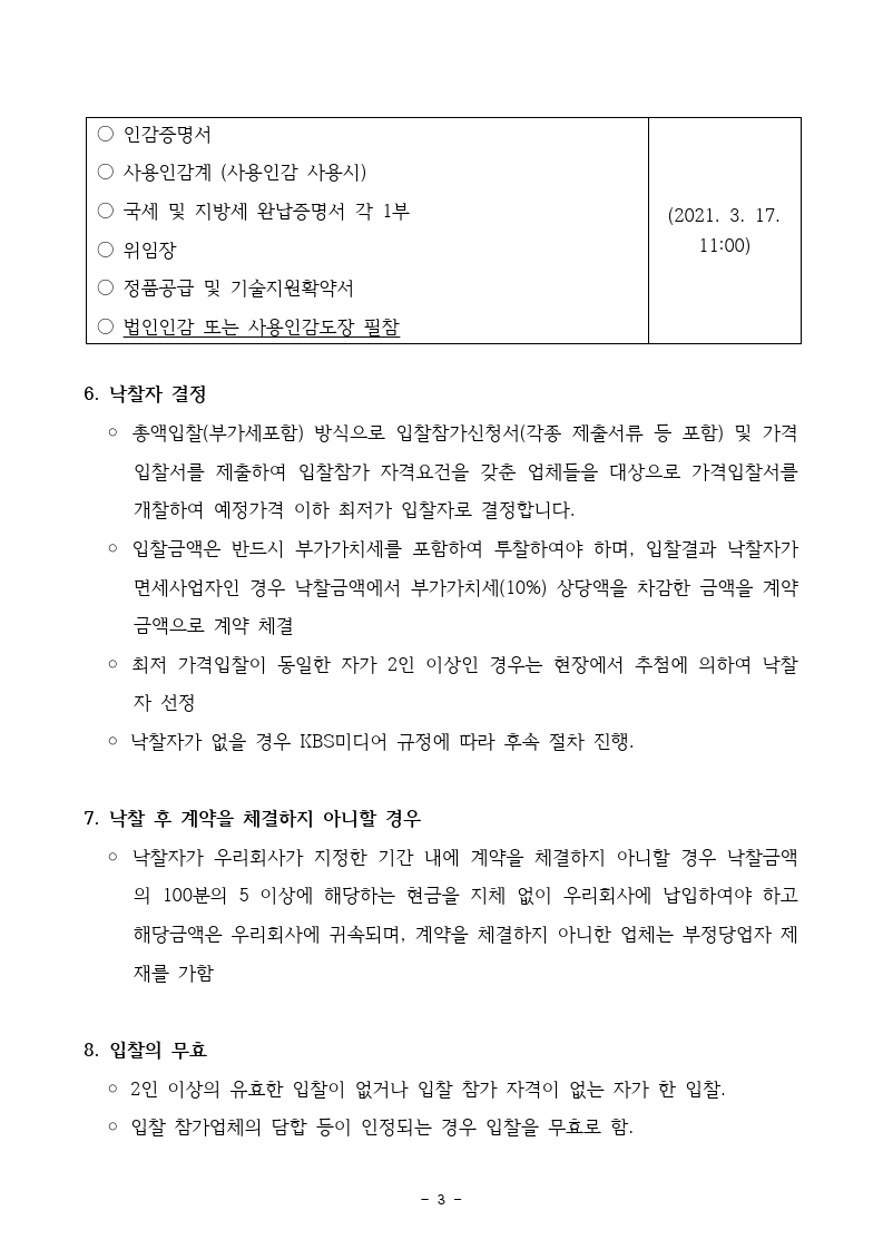 [입찰공고] KBS미디어 사내보안장비 NAC 구입