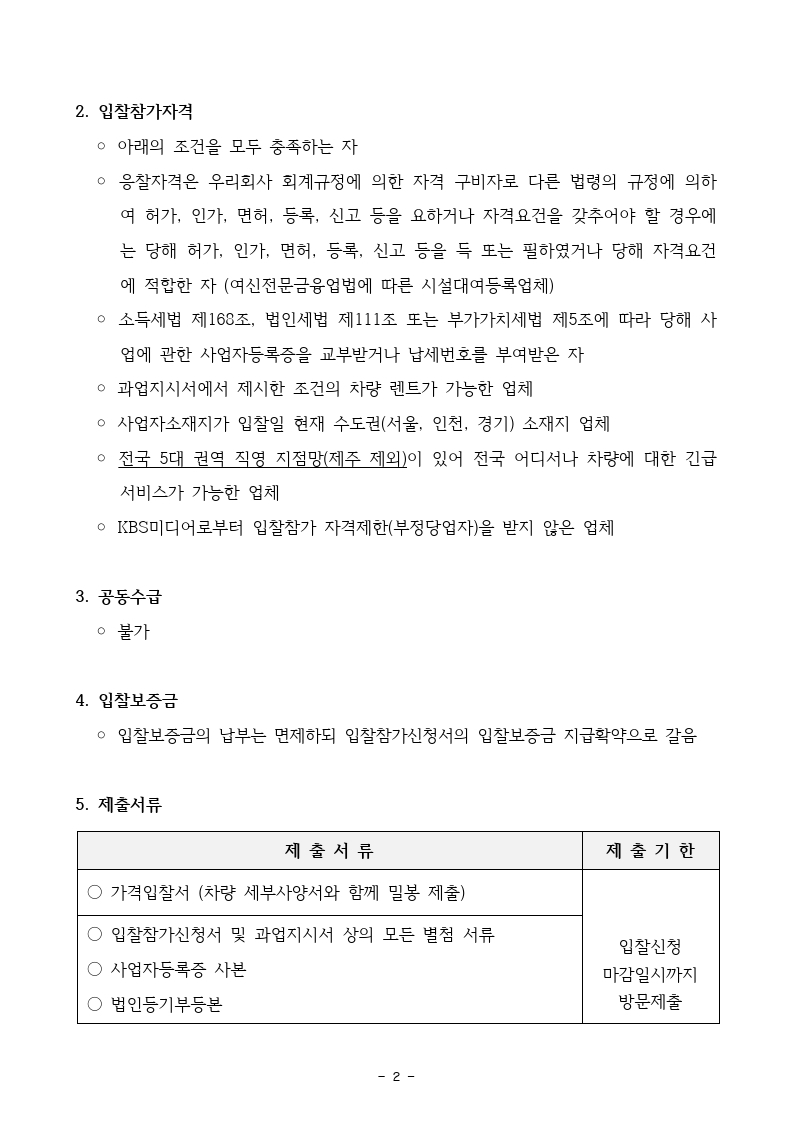[입찰공고] KBS미디어 업무용 차량 장기렌트 사업자 선정