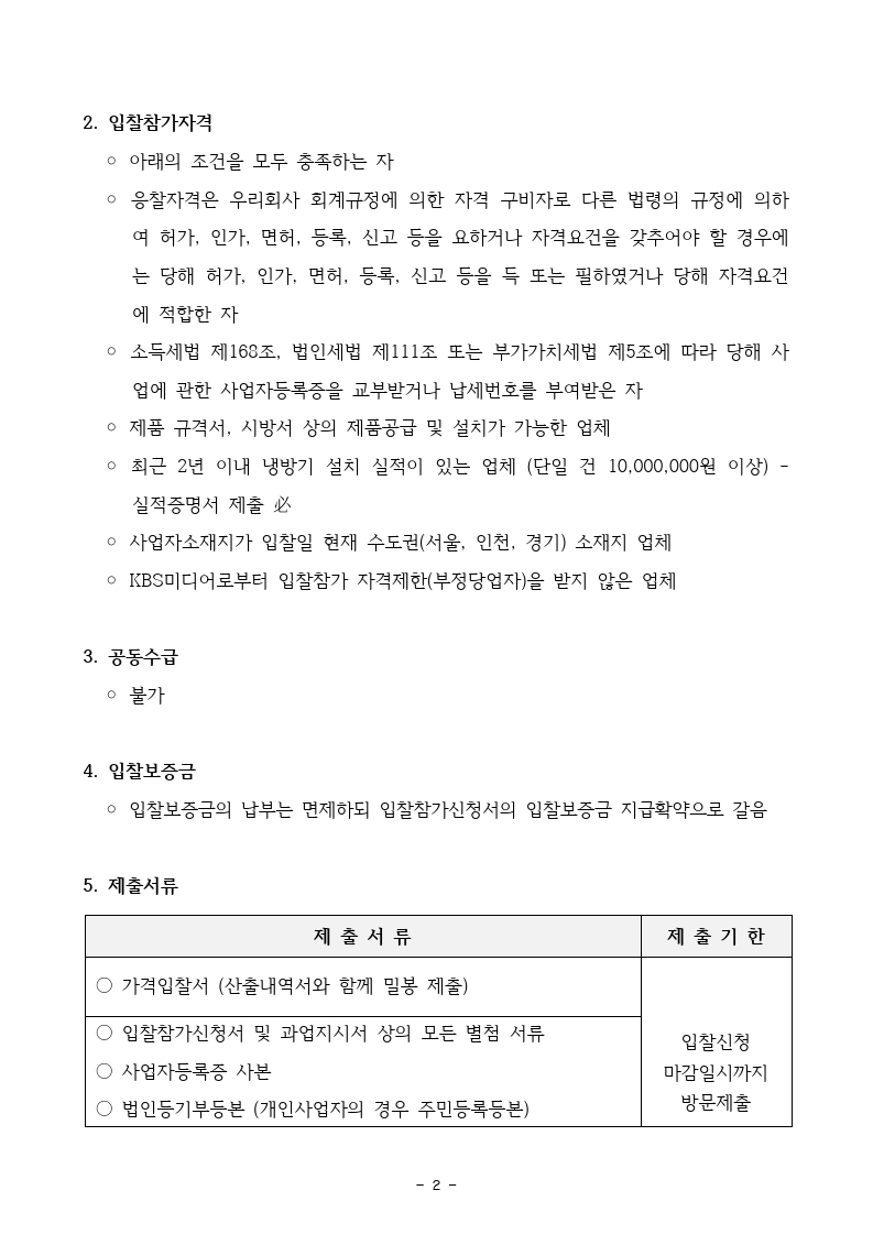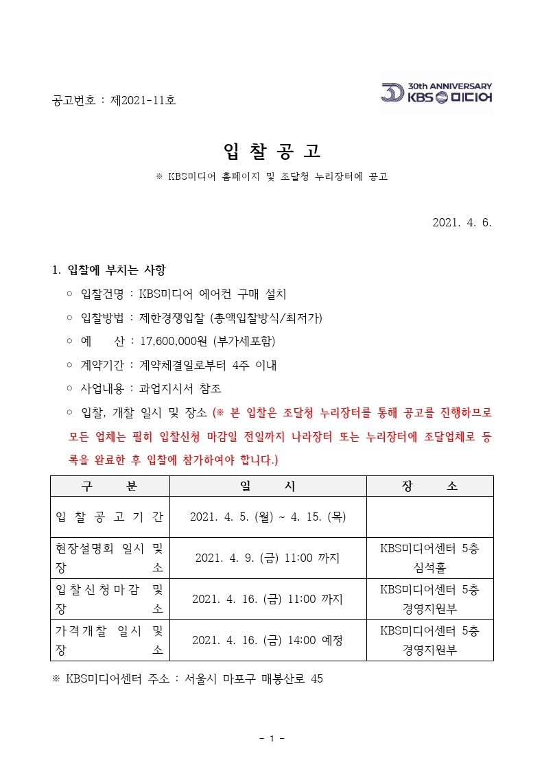 [입찰공고] KBS미디어 에어컨 구매 설치