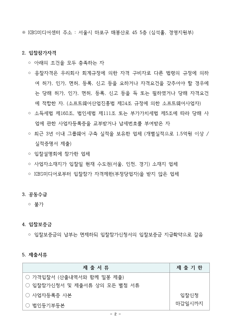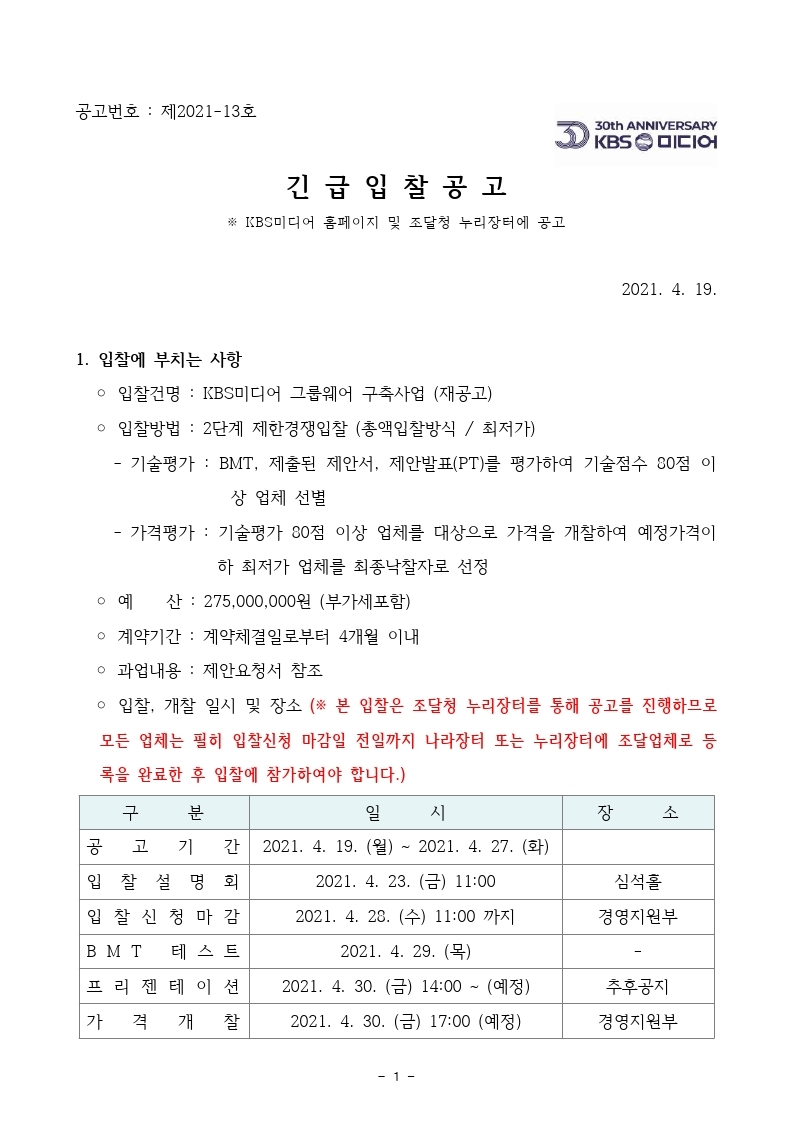 [긴급입찰공고] KBS미디어 그룹웨어 구축 사업 (재공고)
