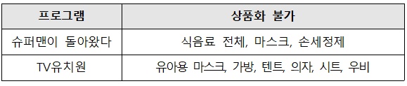 나. 프로그램별 불가 상품