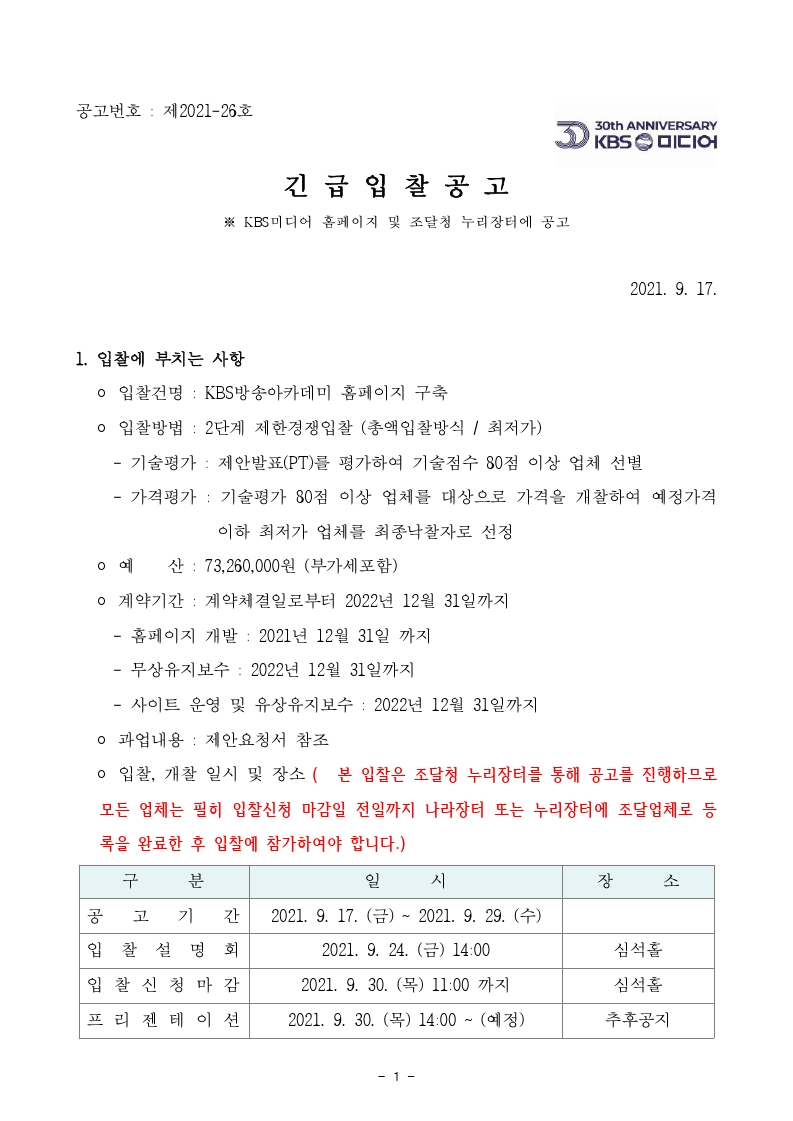 [입찰공고] 방송아카데미 홈페이지 구축 (수정공고)