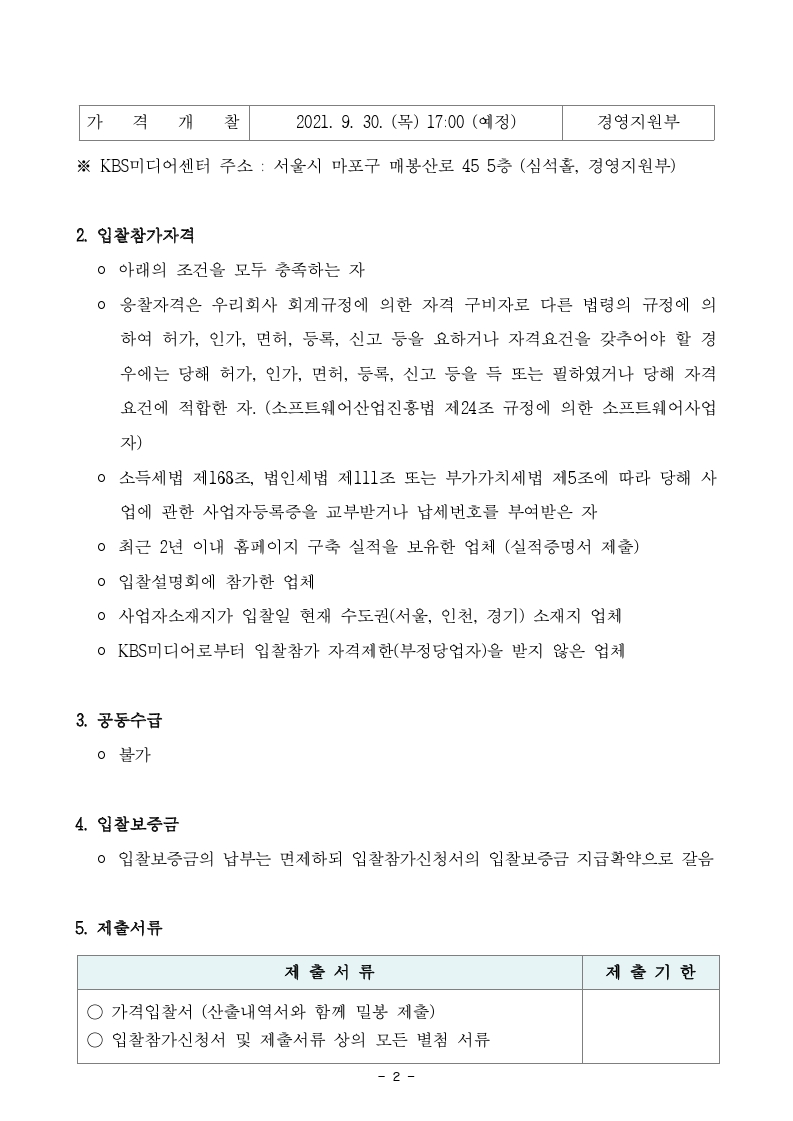 [입찰공고] KBS방송아카데미 홈페이지 구축