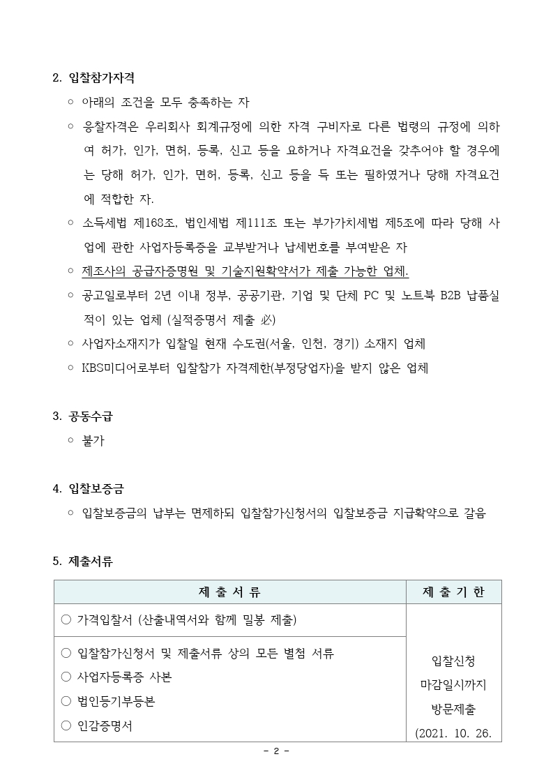 [입찰공고] KBS미디어 사무용 컴퓨터 구입 (재공고)