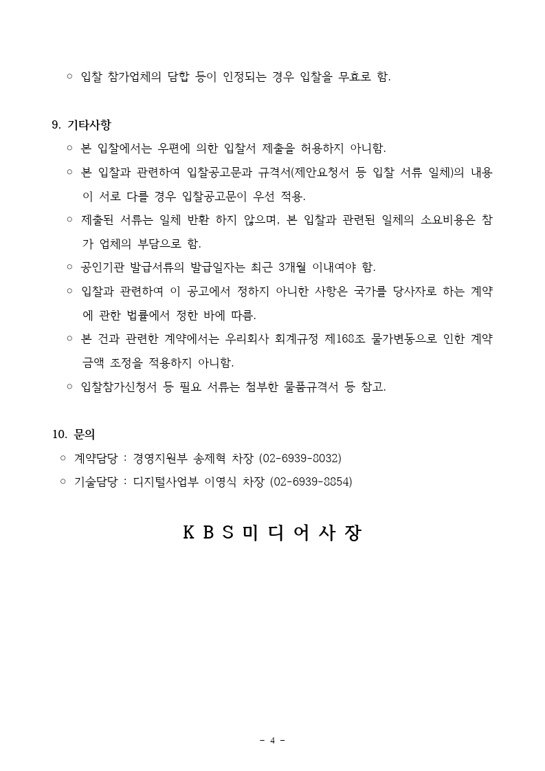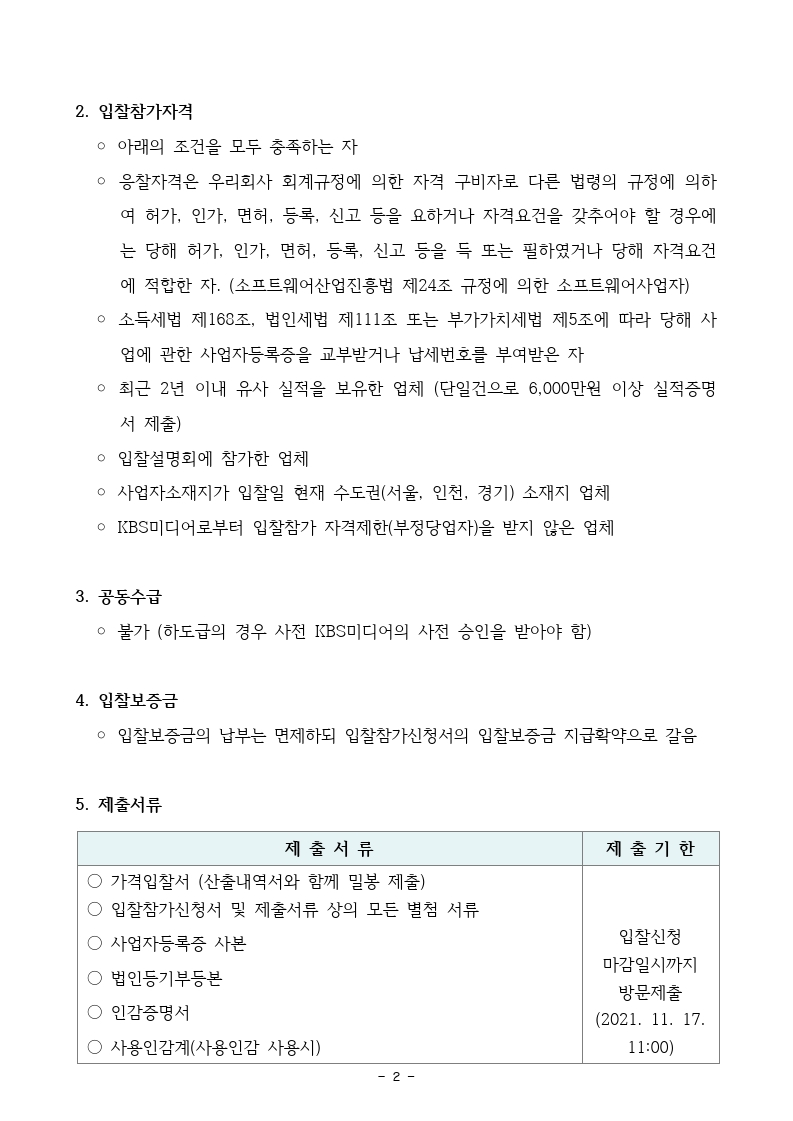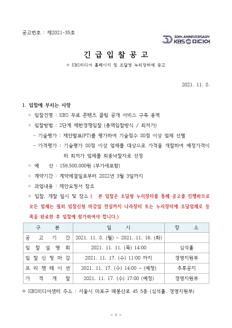 [긴급입찰공고] KBS 무료 콘텐츠 클립 공개 서비스 구축 용역
