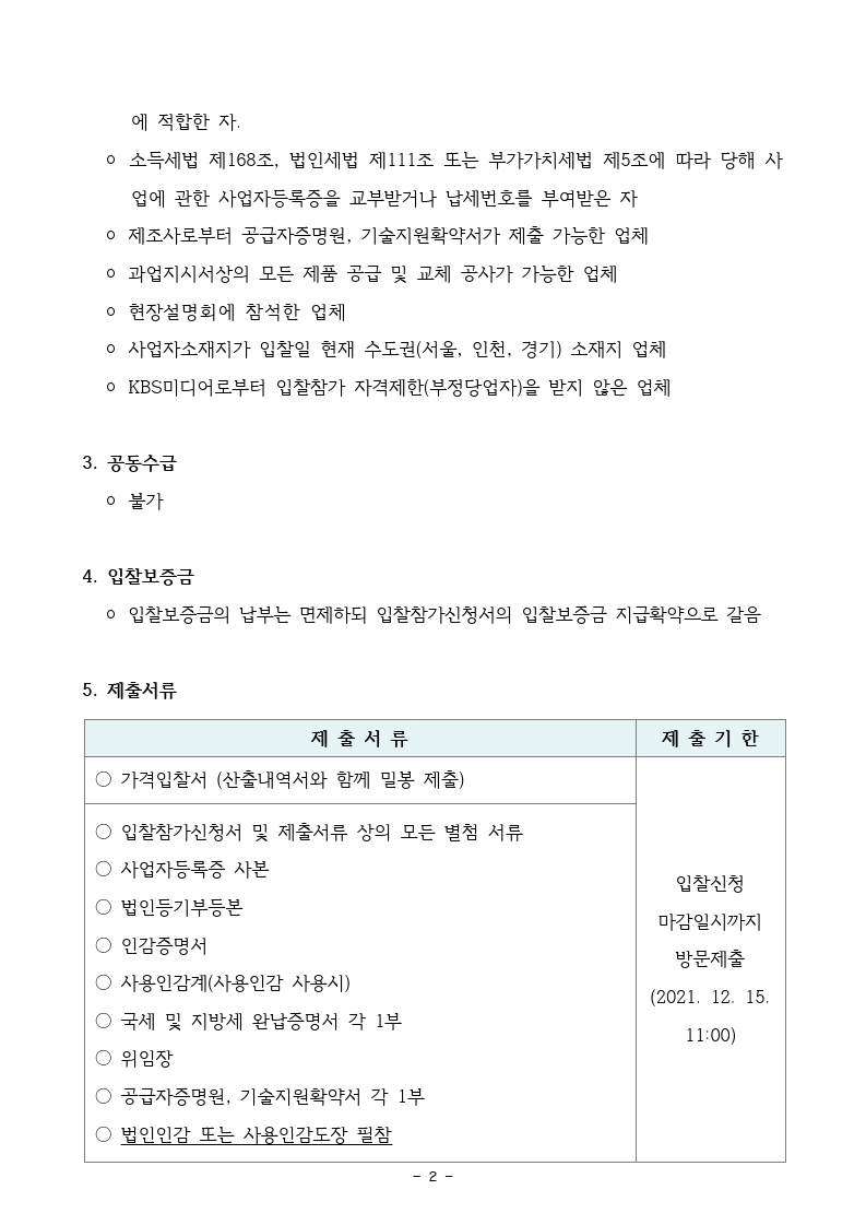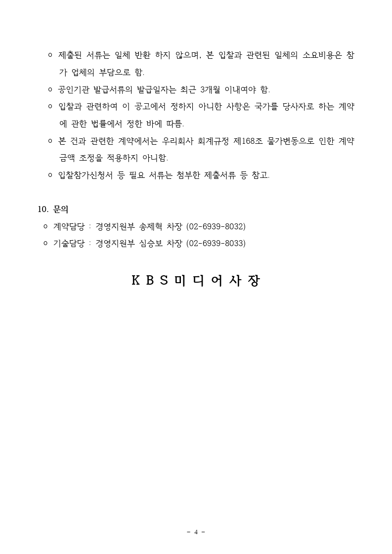 [입찰공고] KBS미디어센터 도어 힌지, 클로져 구입 및 설치