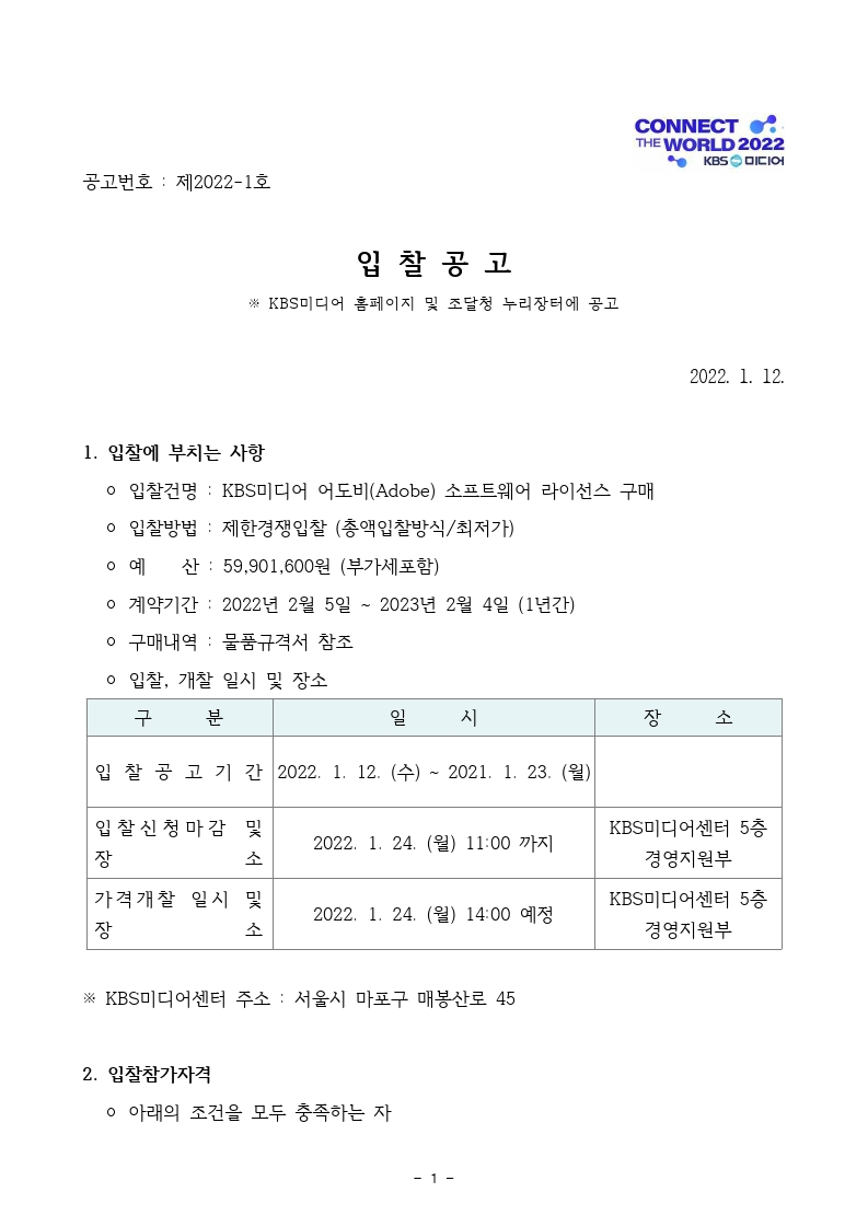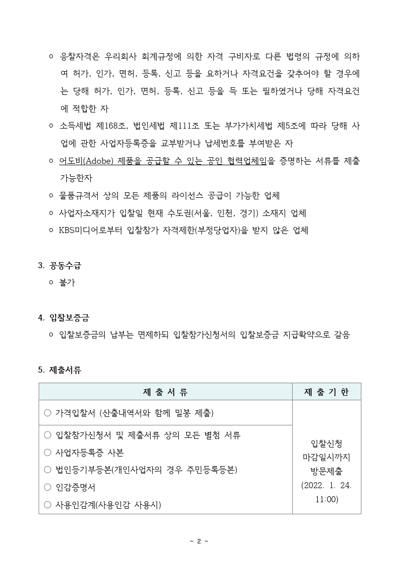 [입찰공고] KBS미디어 어도비(Adobe) 소프트웨어 라이선스 구매