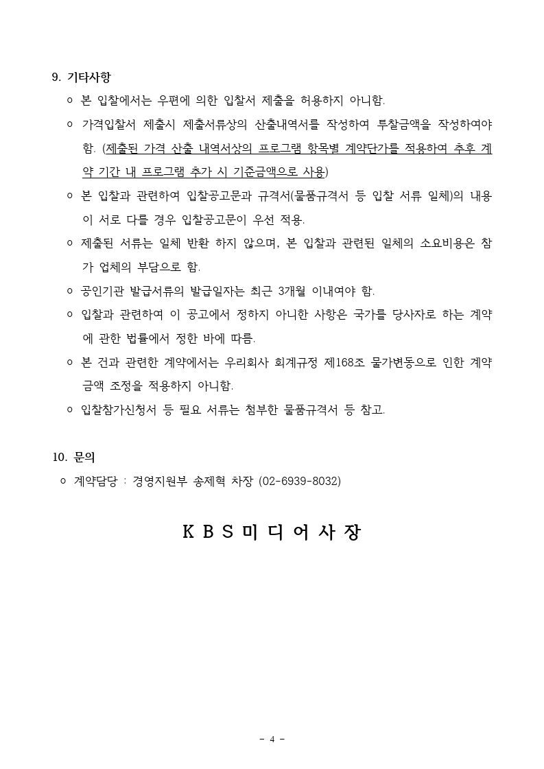 [공고] KBS미디어(주) 외부회계감사인 선임 공고