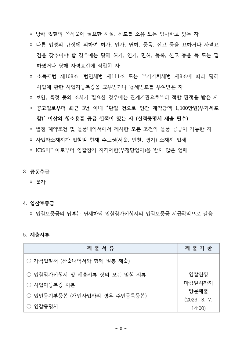 [입찰공고] KBS미디어센터 청소용품 구매 (단가계약) (재공고)