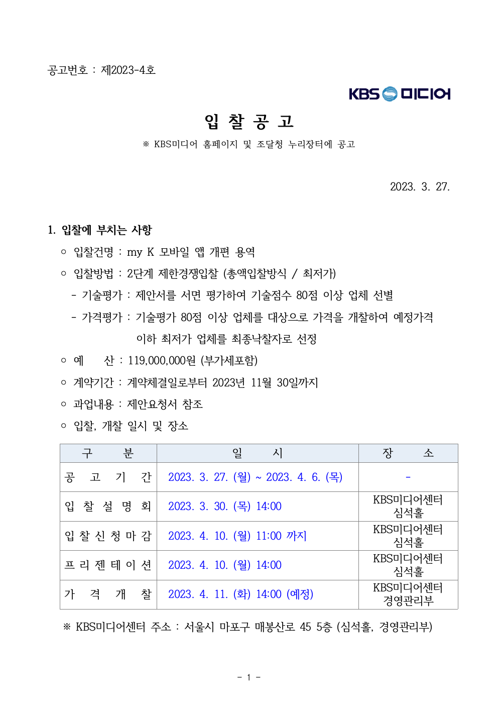 [입찰공고]my K 모바일 앱 개편 용역(재공고)