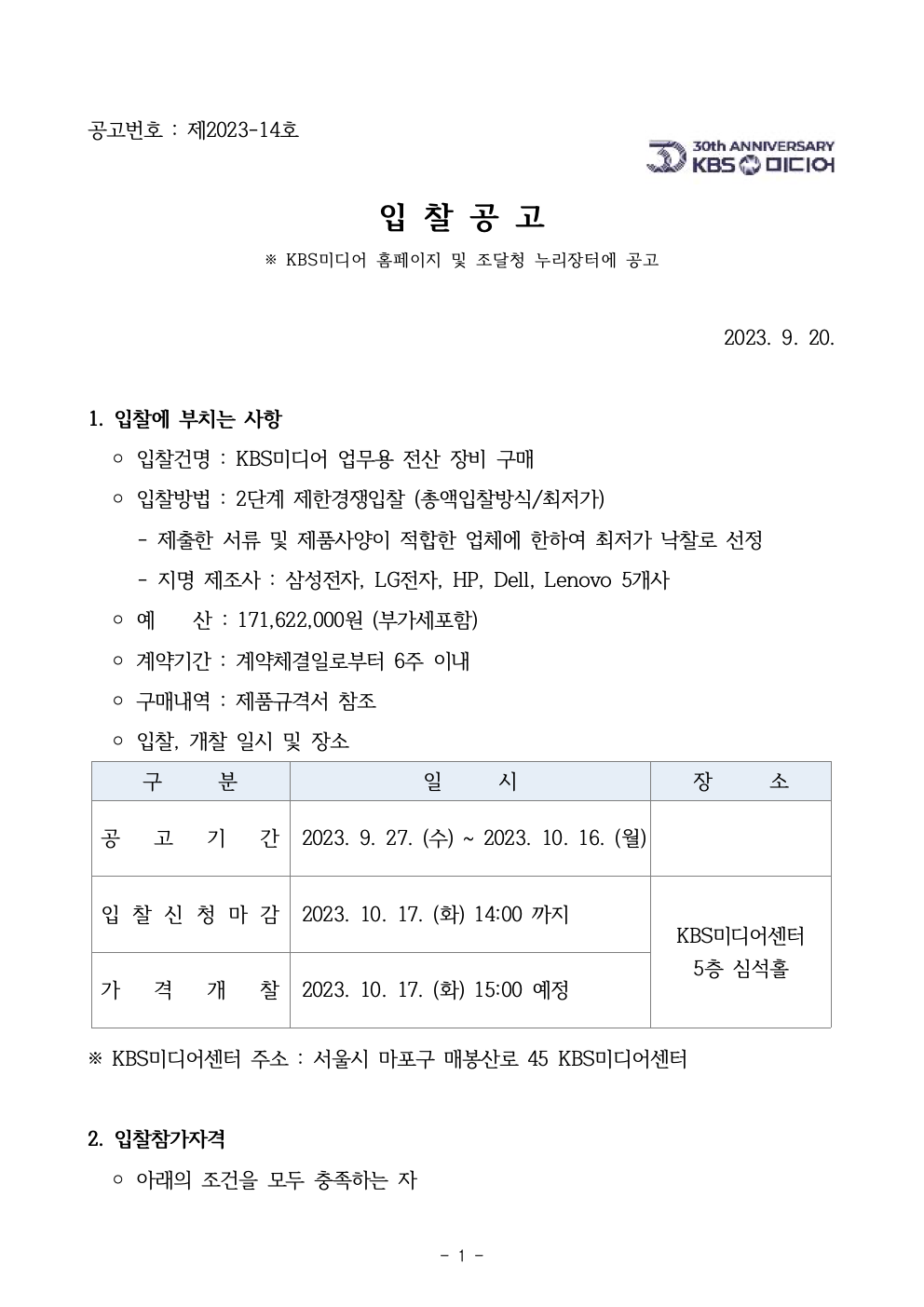 2023년 KBS미디어센터 건축물 정밀안전진단 용역