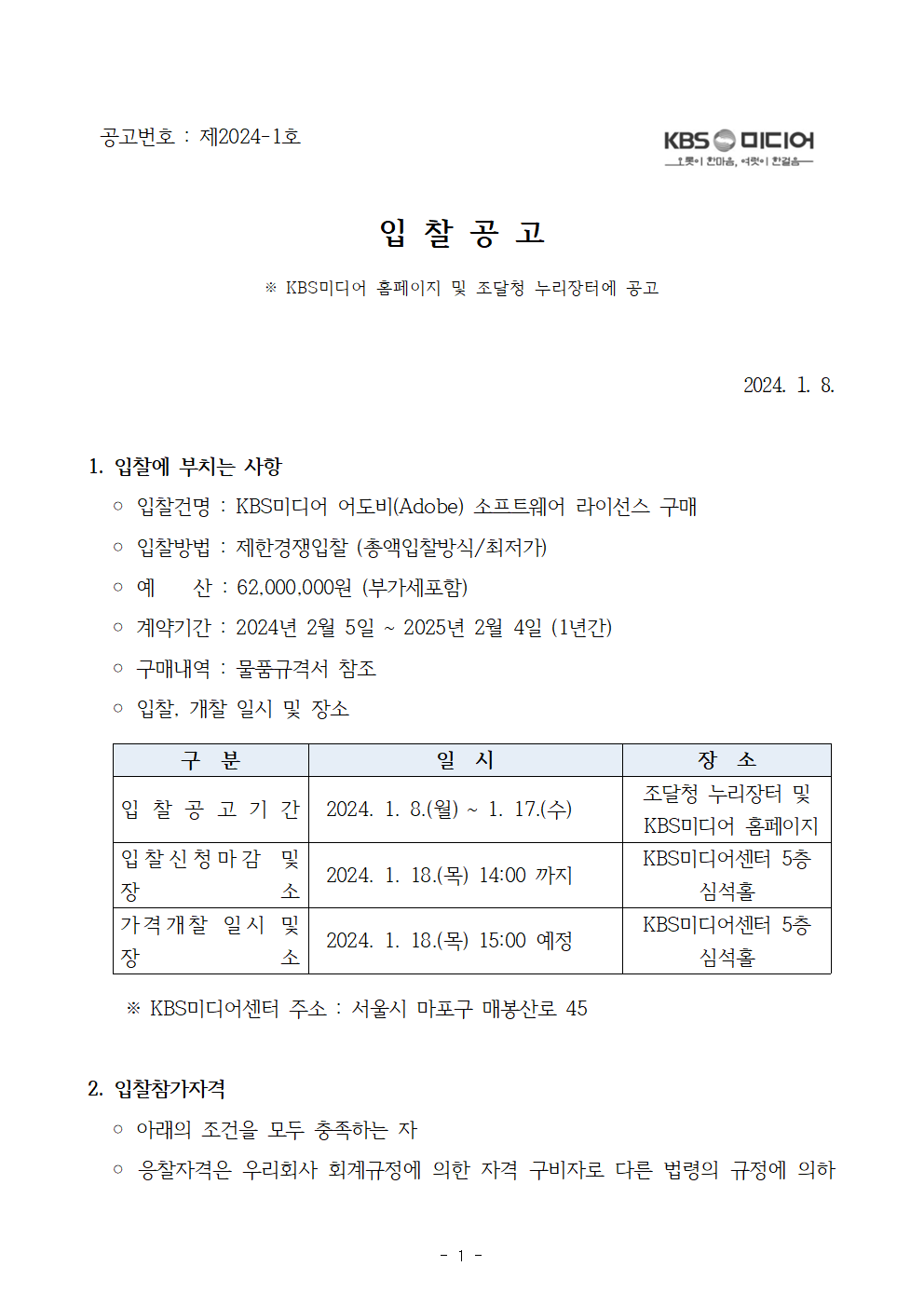 KBS미디어 어도비(Adobe) 소프트웨어 라이선스 구매