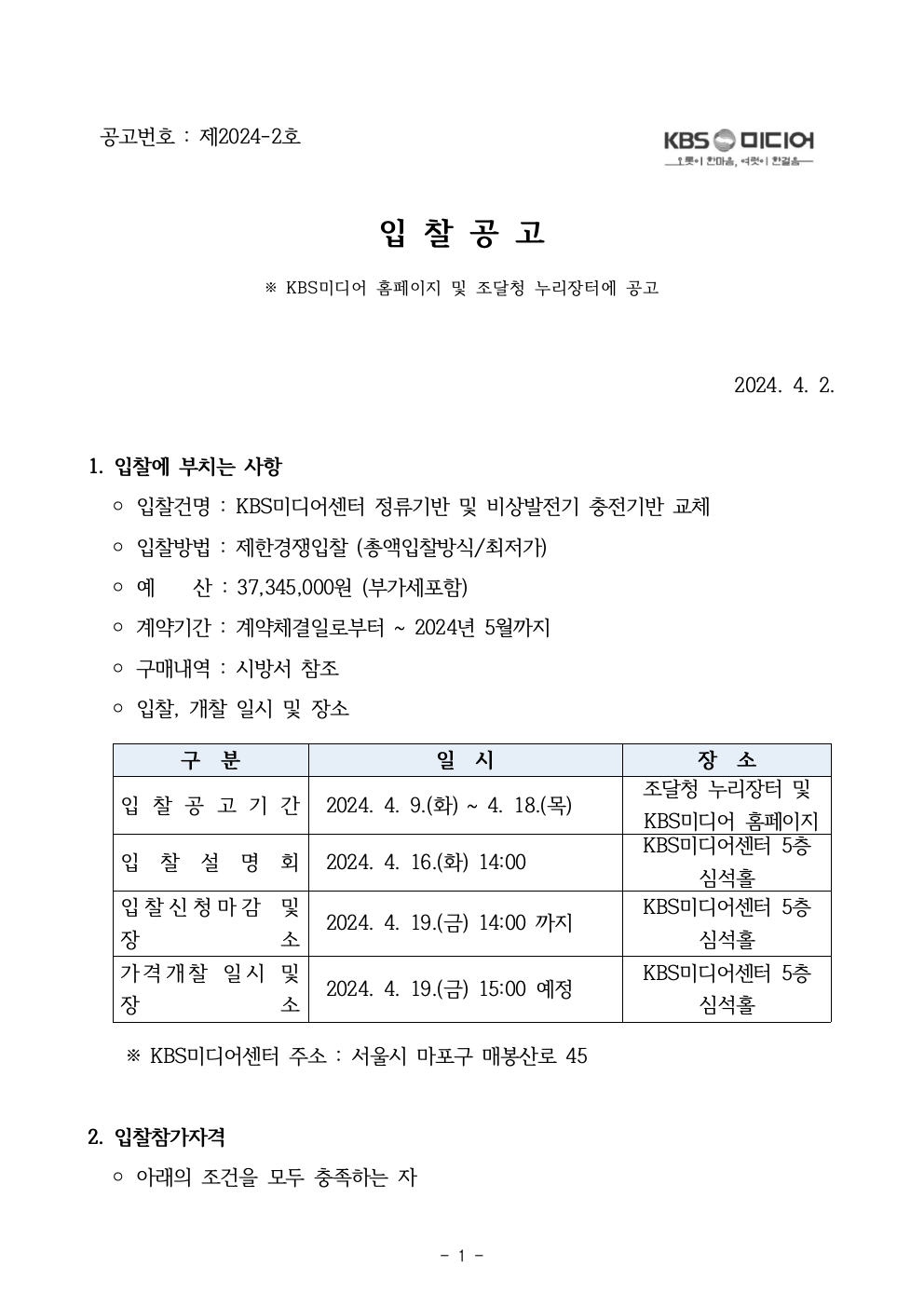KBS미디어센터 정류기반 및 비상발전기 충전기반 교체