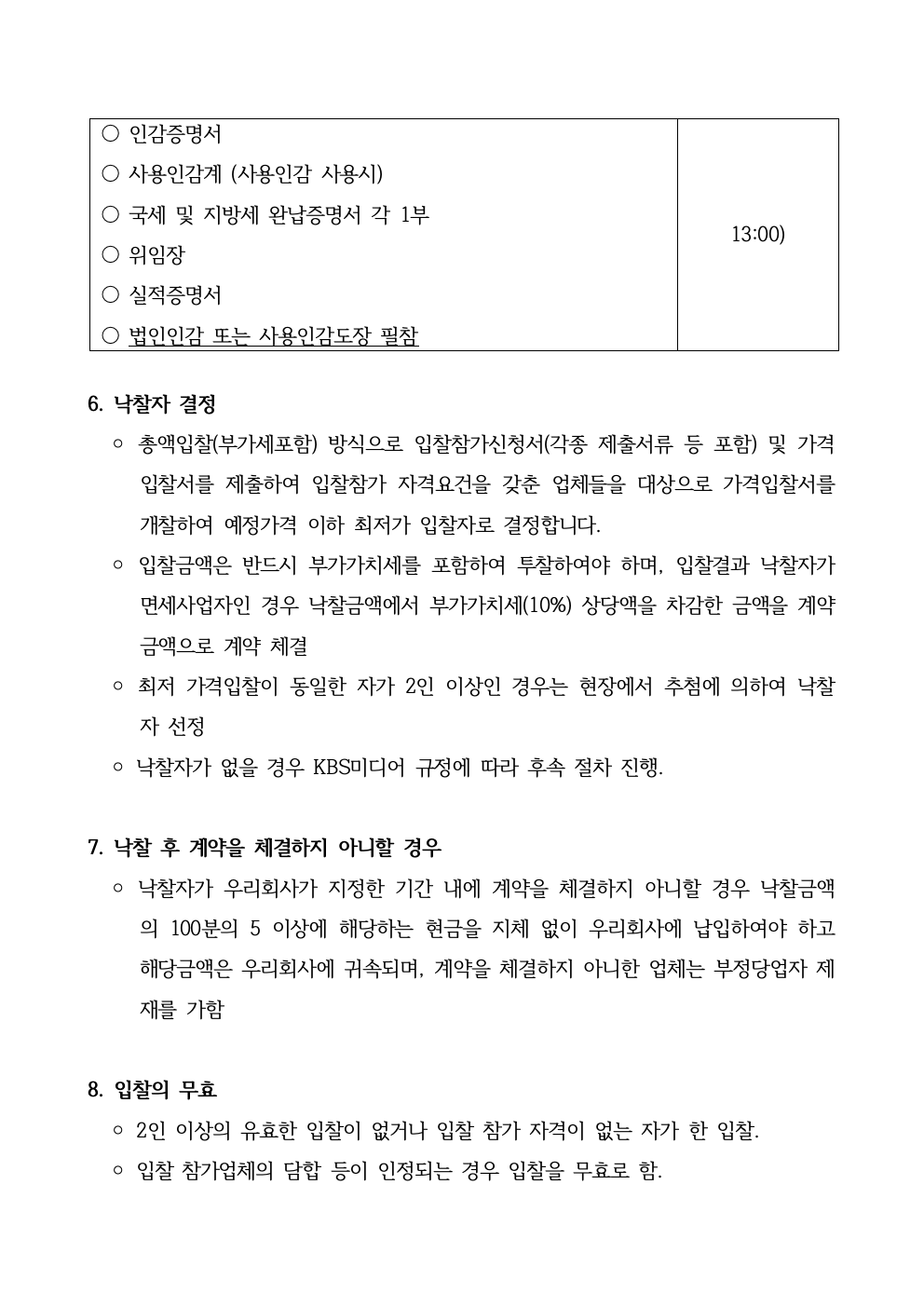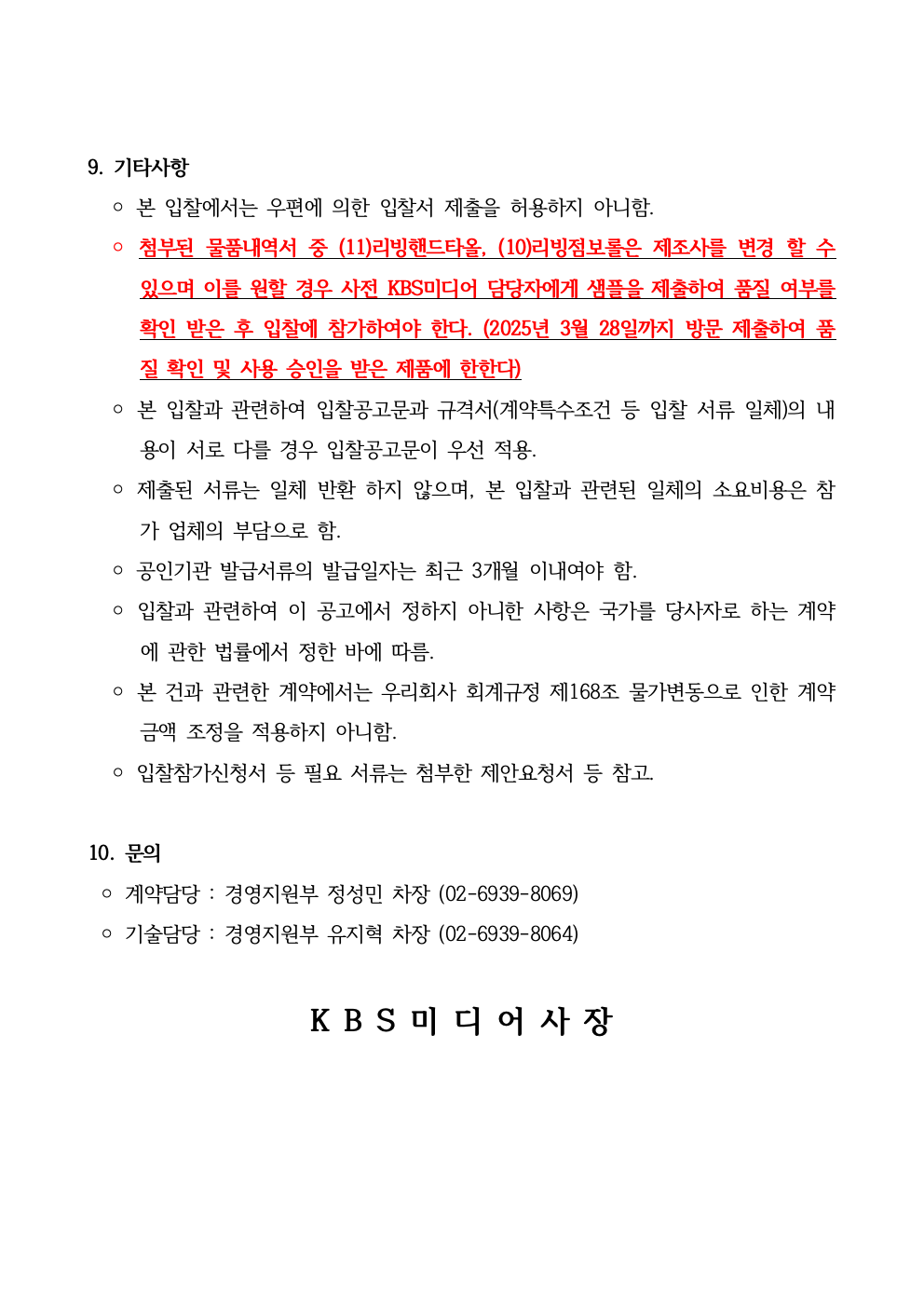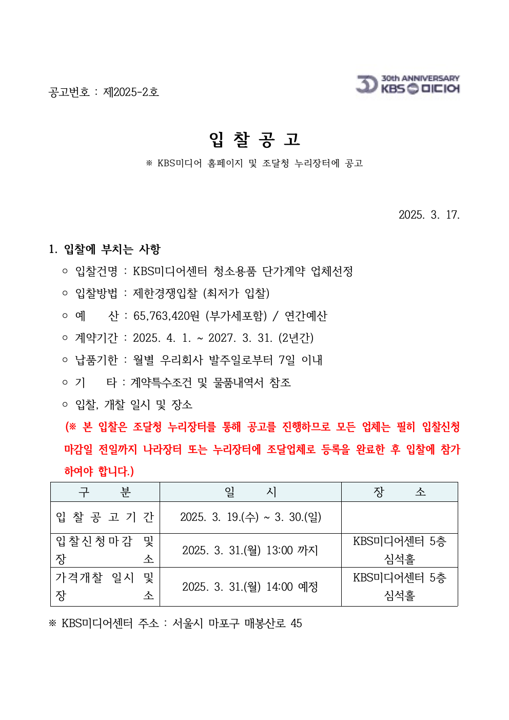 KBS미디어센터 청소용품 단가계약 업체선정
