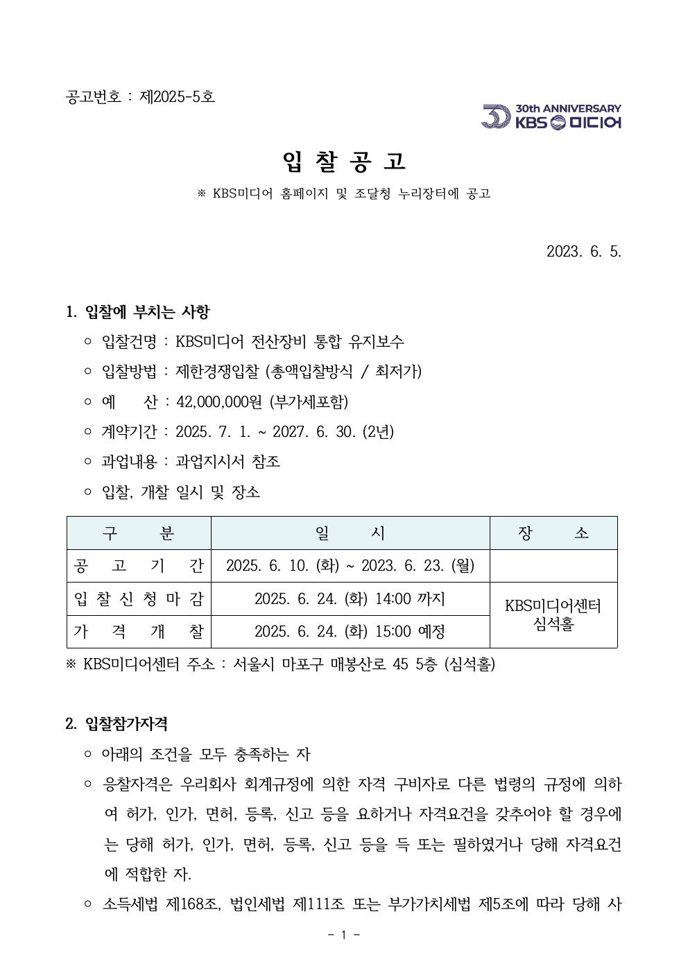 KBS미디어 전산장비 통합 유지보수(재공고)