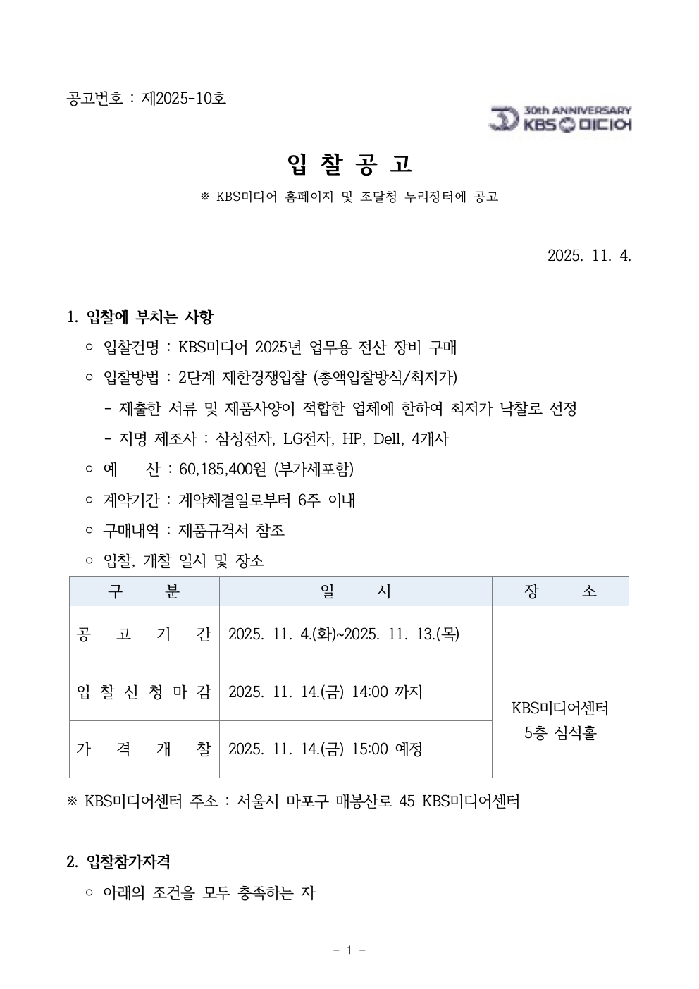 장/단기 스토리지 시스템 교체 및 유지보수 사업자 선정