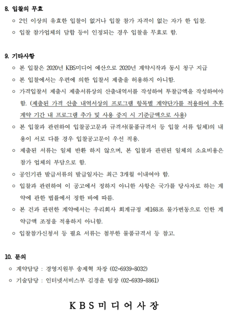[입찰공고]KBS미디어 백신 시스템 구축 사업자 선정