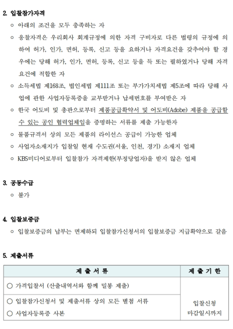 [입찰공고] KBS미디어 어도비(Adobe) 소프트웨어 라이선스 구매