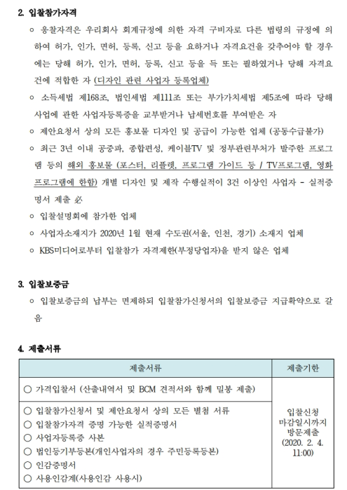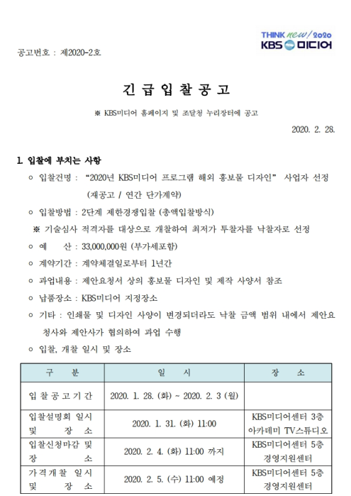 [입찰공고](재공고)2020년KBS미디어 프로그램 해외홍보물 디자인 사업자 선정