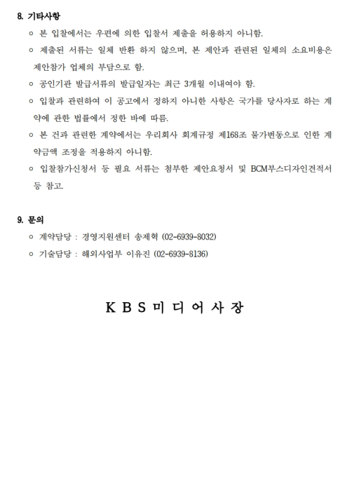 [입찰공고]2020년KBS미디어 프로그램 해외홍보물 디자인 사업자 선정