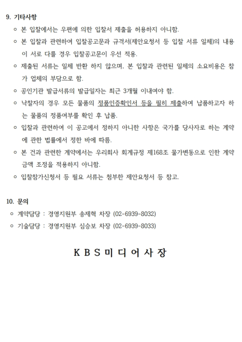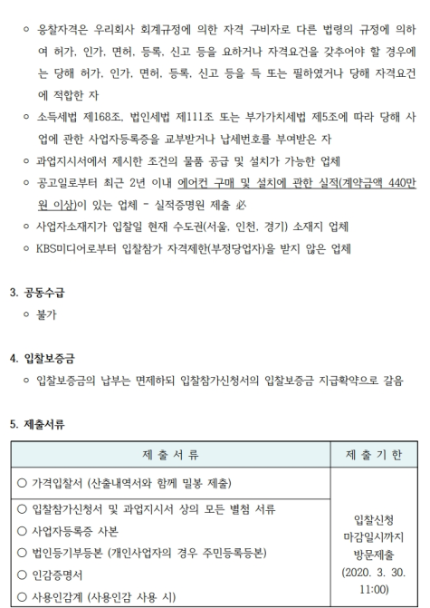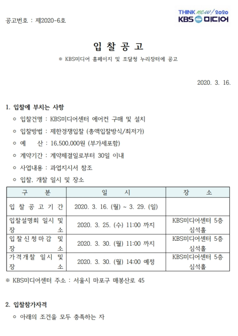 [입찰공고]KBS미디어센터 에어컨 구매 및 설치