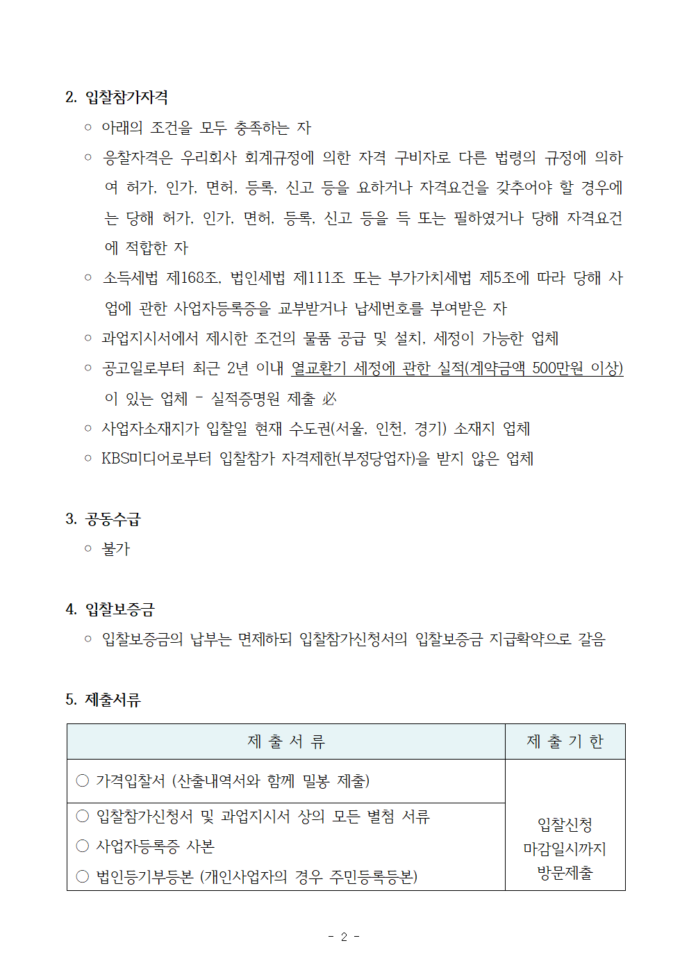 [입찰공고]KBS미디어센터 에어컨 구매 및 설치
