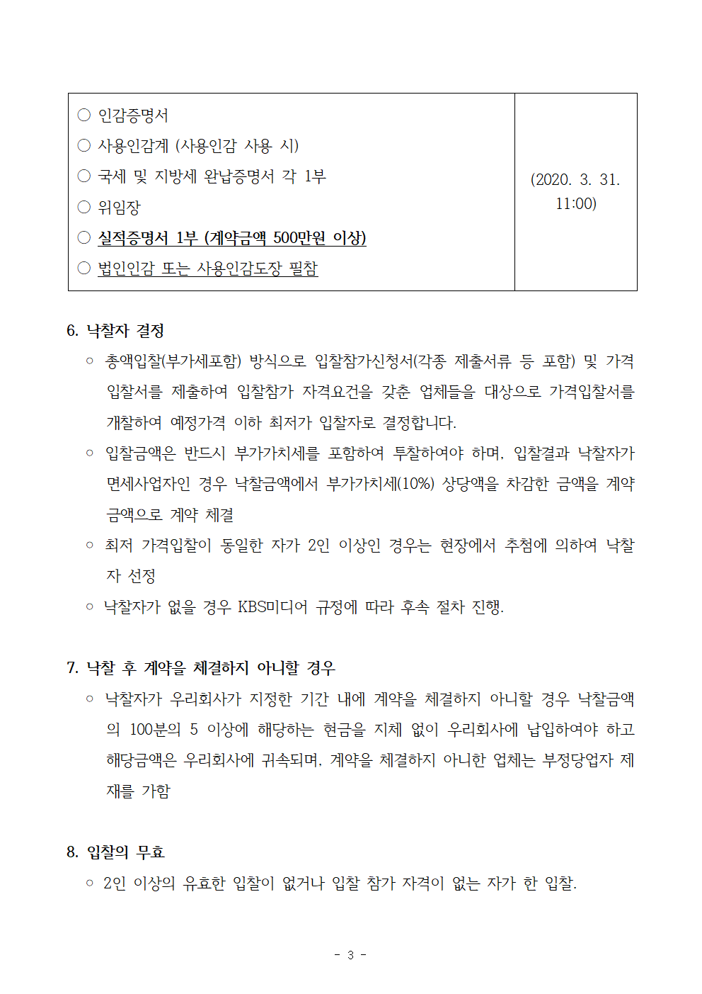 [입찰공고]KBS미디어 영상작업용 Mac 컴퓨터 구입
