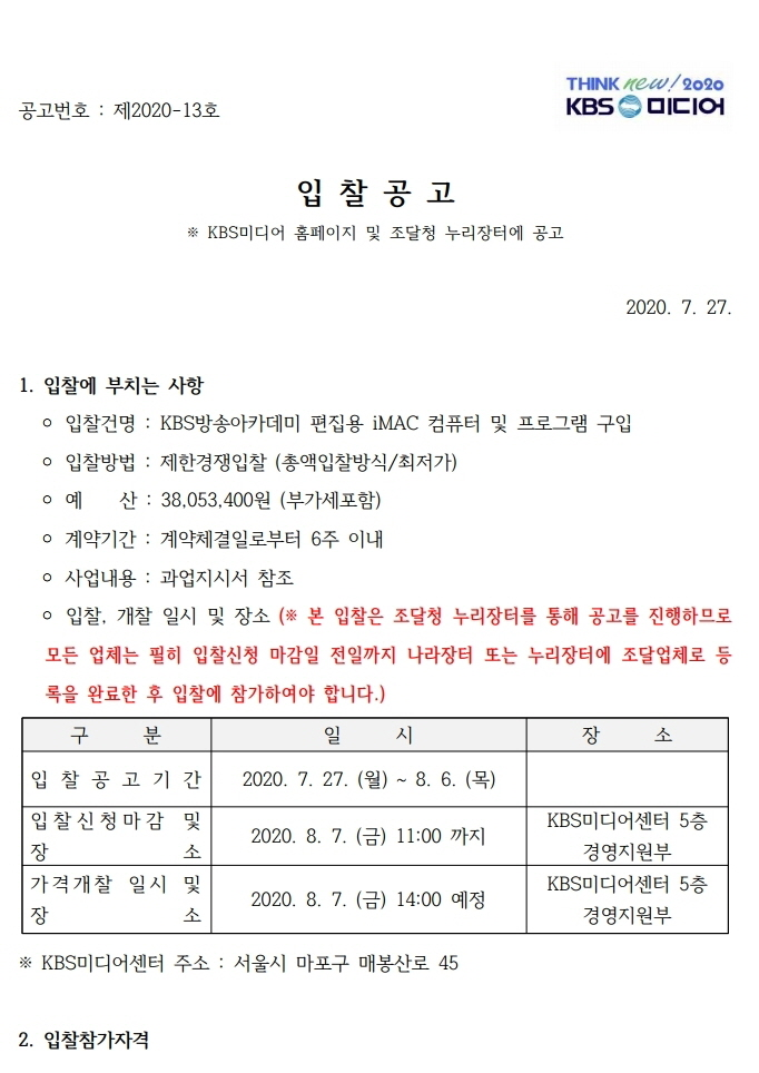 [긴급입찰공고] KBS미디어 드라마 BD(Blu-ray Disc) 프레싱 제작 (재공고)