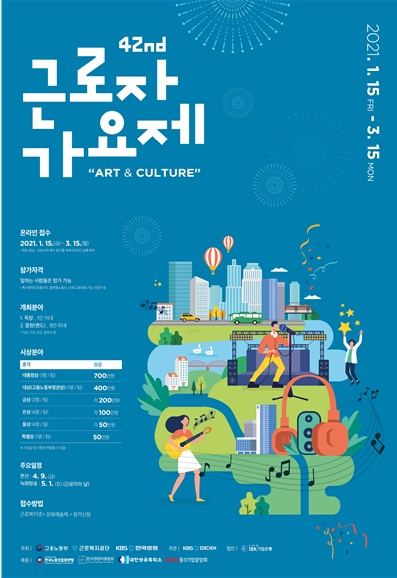 근로복지공단 관계자는 “올 가요제는 코로나19 확산 및 방지를 위해 예선심사를 동영상 심사로 전환하는 방향으로 진행하게 됐다. 오는 3월 15일 월요일까지 온라인 접수를 받고 있으니 많은 가요제 참가를 바란다. 답답한 일상 속에 숨겨왔던 끼와 열정을 마음껏 표출할 수 있는 기회”라고 설명했다.