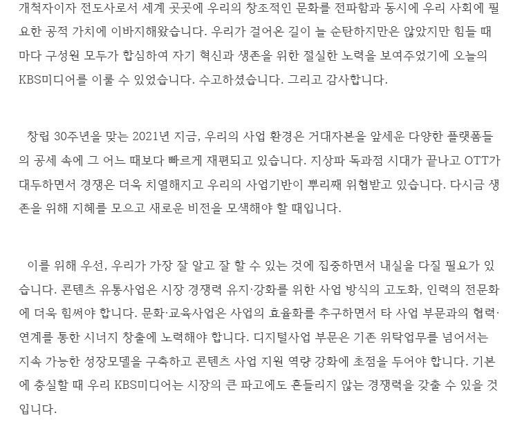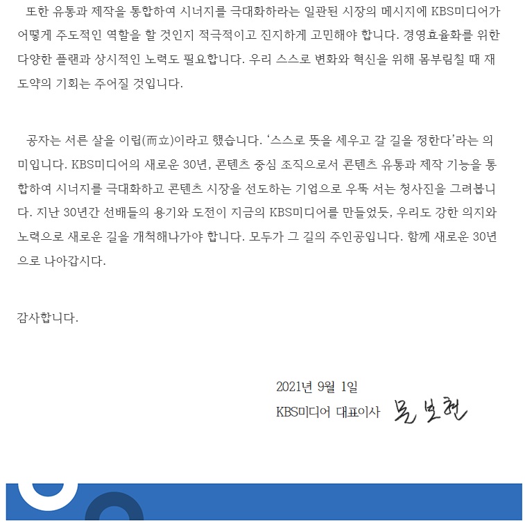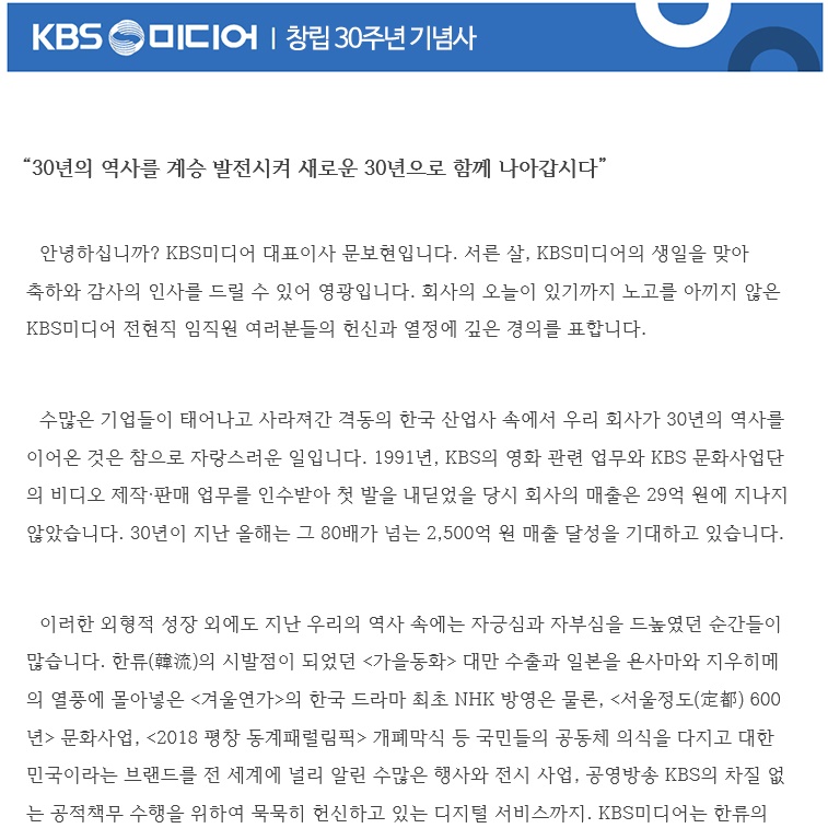KBS미디어 창립 30주년 기념사