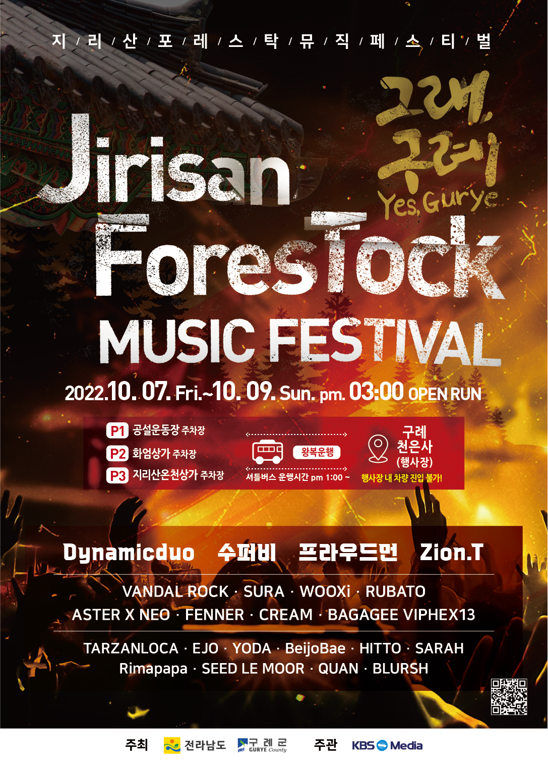 “2022~2023 전남 방문의 해”를 맞아 전남 구례군 주최, KBS미디어가 주관하는 MZ 세대와 EDM 매니아 층을 위해 <지리산 포레스탁 뮤직 페스티벌>을 개최한다.