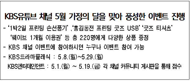 KBS유튜브 채널 5월 가정의 달을 맞아 풍성한 이벤트 진행