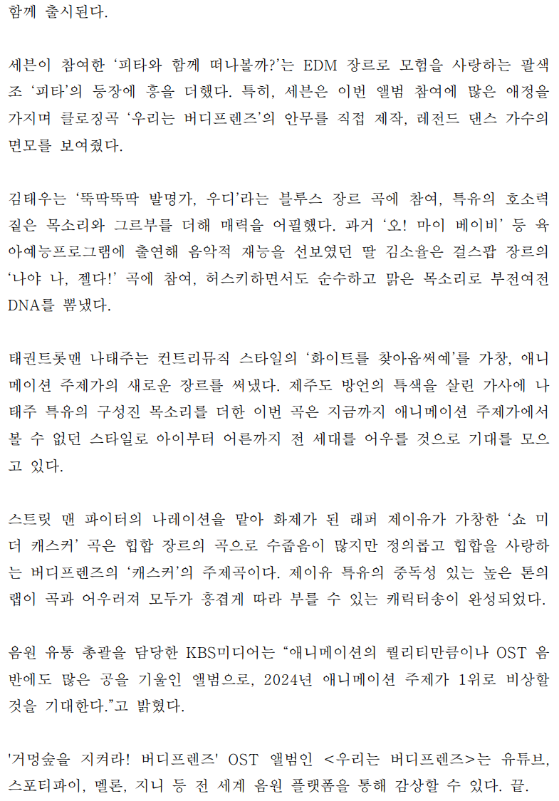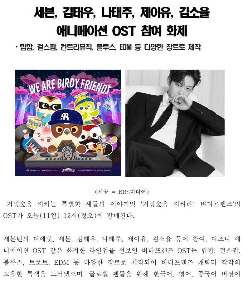 KBS 애니메이션 <거멍숲을 지켜라! 버디프렌즈> OST Part. 1 참여