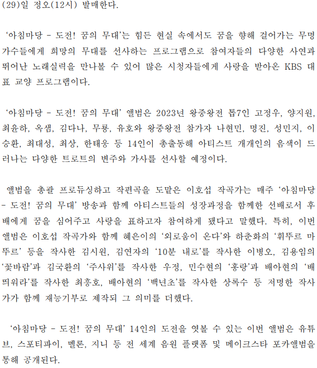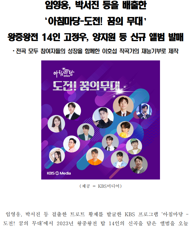 KBS 아침마당- 도전꿈의 무대 신규 앨범 발매