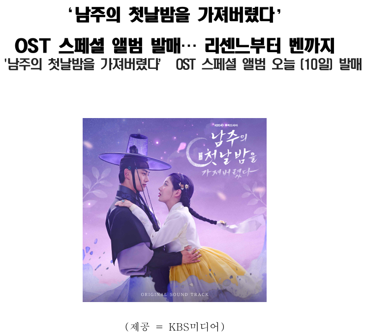 한편, ‘남주의 첫날밤을 가져버렸다’ OST Special 앨범은 (10일) 정오에 각종 음원 플랫폼을 통해 공개된다.