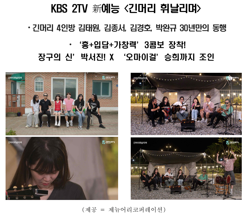 9월 3일(수) 밤 9시 50분 첫 방송을 앞둔 KBS 2TV 신규 예능 <긴머리 휘날리며>에서 대한민국 록의 전설 긴머리 4인방(김태원×김종서×김경호×박완규)이 30년 만에 첫 동행에 나선다.