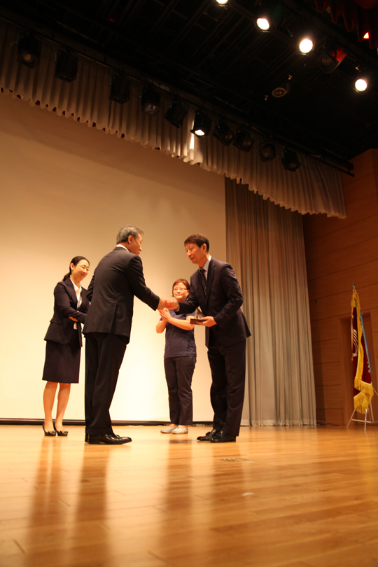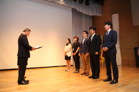 이날 기념식은 사외 공적상 포상, 정기포상, 근속상 수여, 회사 중기 성장 전략 발표 순으로 진행되었습니다.