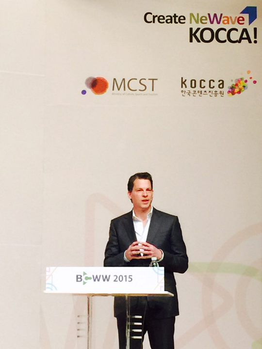 개막식 기조연설에는 '하우스 오브 카드(House of cards)’ 시리즈로 유명한 세계 최대 인터넷기반 TV서비스(OTT)업체인 넷플릭스(Netflix)의 글로벌사업 총괄책임자인 그렉 피터스가 연설자로 나서 "지난 주 일본에 진출한 데 이어 한국에는 2016년 초 서비스를 시작할 계획"이라며 한국 시장 진출을 공식화했습니다. 한편 '경계의 붕괴-콘텐츠의 적응과 변이'라는 주제로 콘텐츠의 융합 속에서의 미래 방송영상콘텐츠의 진화에 대한 흥미로운 전망과 함께 넷플릭스를 통해 한류 콘텐츠를 전 세계 시청자들에게 전달하고 싶다는 의지도 밝혔습니다.