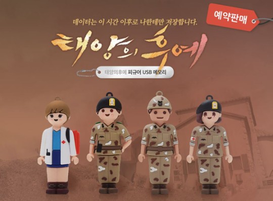 KBS미디어는 KBS 2TV 드라마 '태양의 후예' 공식기획상품 2차로 드라마 주연 4명의 캐릭터를 잘 살린 피규어 겸용 UBS 메모리를 출시하고 12일 G마켓, 옥션, 11번가, 인터파크, 후추통 등 온라인 쇼핑몰에서 예약판매한다고 밝혔다.